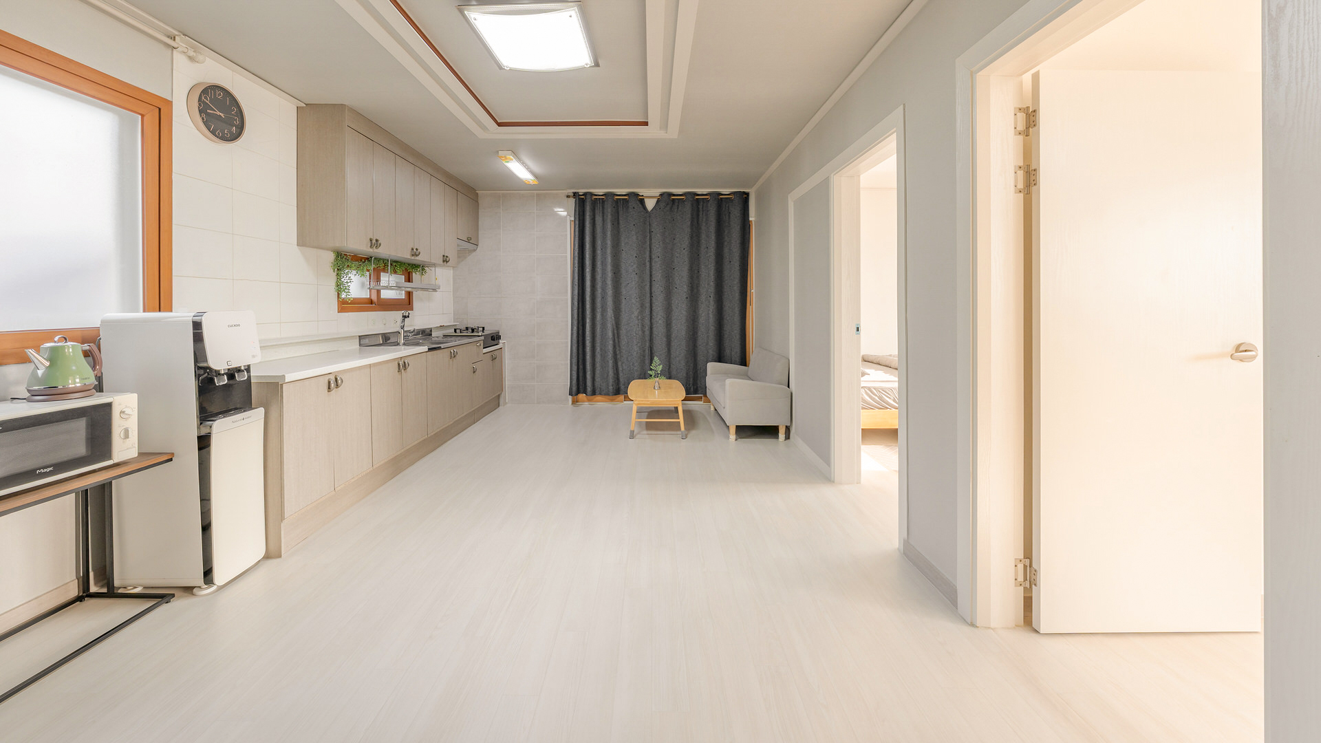 - 집기품목 : 욕실용품, 남녀공용, TV, 금연, 냉장고, 에어컨, 전기밥솥, 취사시설/도구, 전자레인지, 커피포트, 드라이기, 와이파이, 비누, 샴푸, 린스, 타월, 치약, 정수기, 바다전망